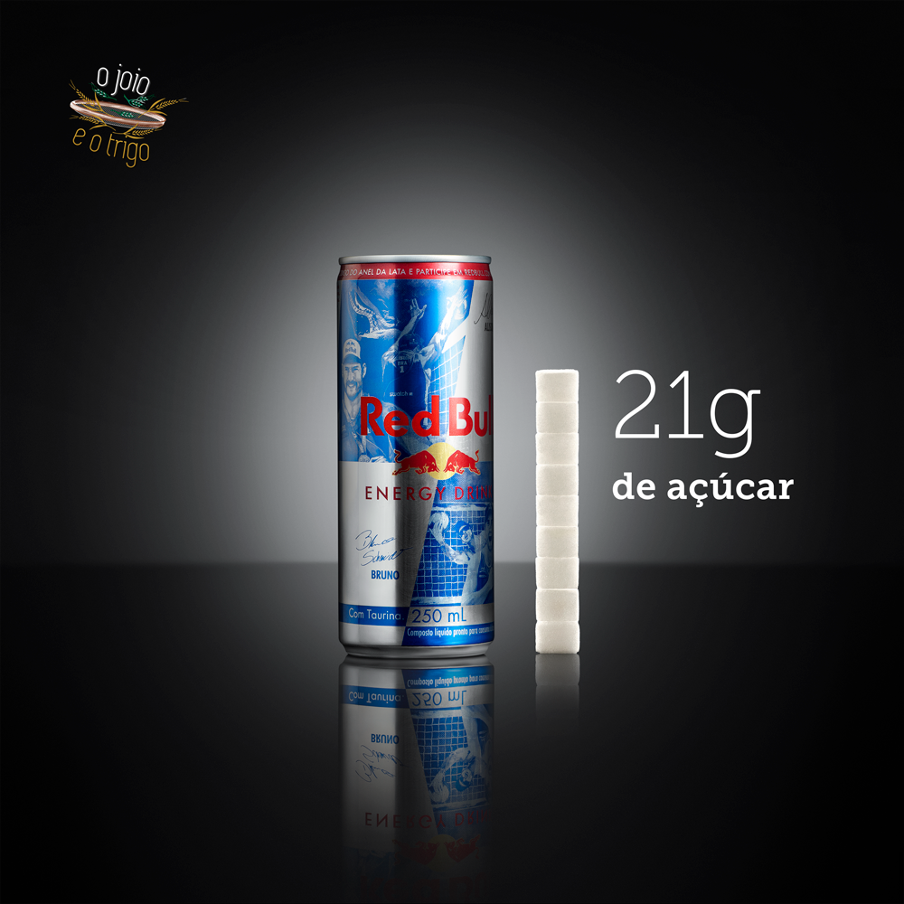 O limite diário de consumo de açúcar recomendado pela Organização Mundial de Saúde (OMS) é de 50 gramas por dia para adultos. Pesquisadores independentes sugerem a metade disso como seguro, e menos ainda no caso de crianças. Uma lata de Red Bull tem 21 gramas de açúcar, quase a metade do teto diário que deveria ser consumido.