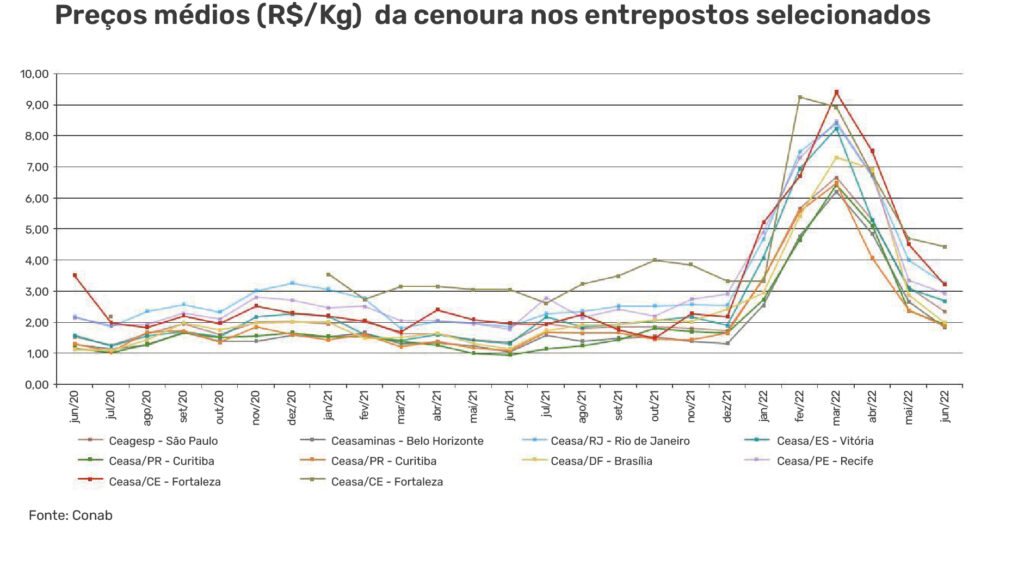 É verdade que o aspecto sazonal da produção desses alimentos causa uma esperada flutuação de preço, mas o caso da cenoura merece destaque pela dimensão do problema e por acender um alerta vermelho para o que está acontecendo no campo.