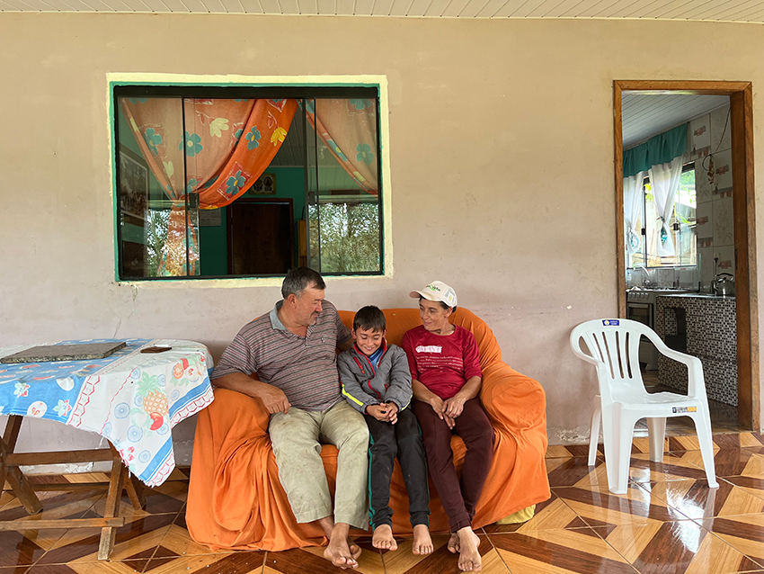 Em Rio Azul, o casal Margarete e Lauro Bueno planta tabaco há 40 anos. A reportagem foi recebida na garagem da casa de alvenaria, à beira da rodovia, onde moram há menos de um ano. “A outra casa, de madeira, estava podre, mas a gente não conseguia fazer outra, só ano passado que deu para construir”, contam.