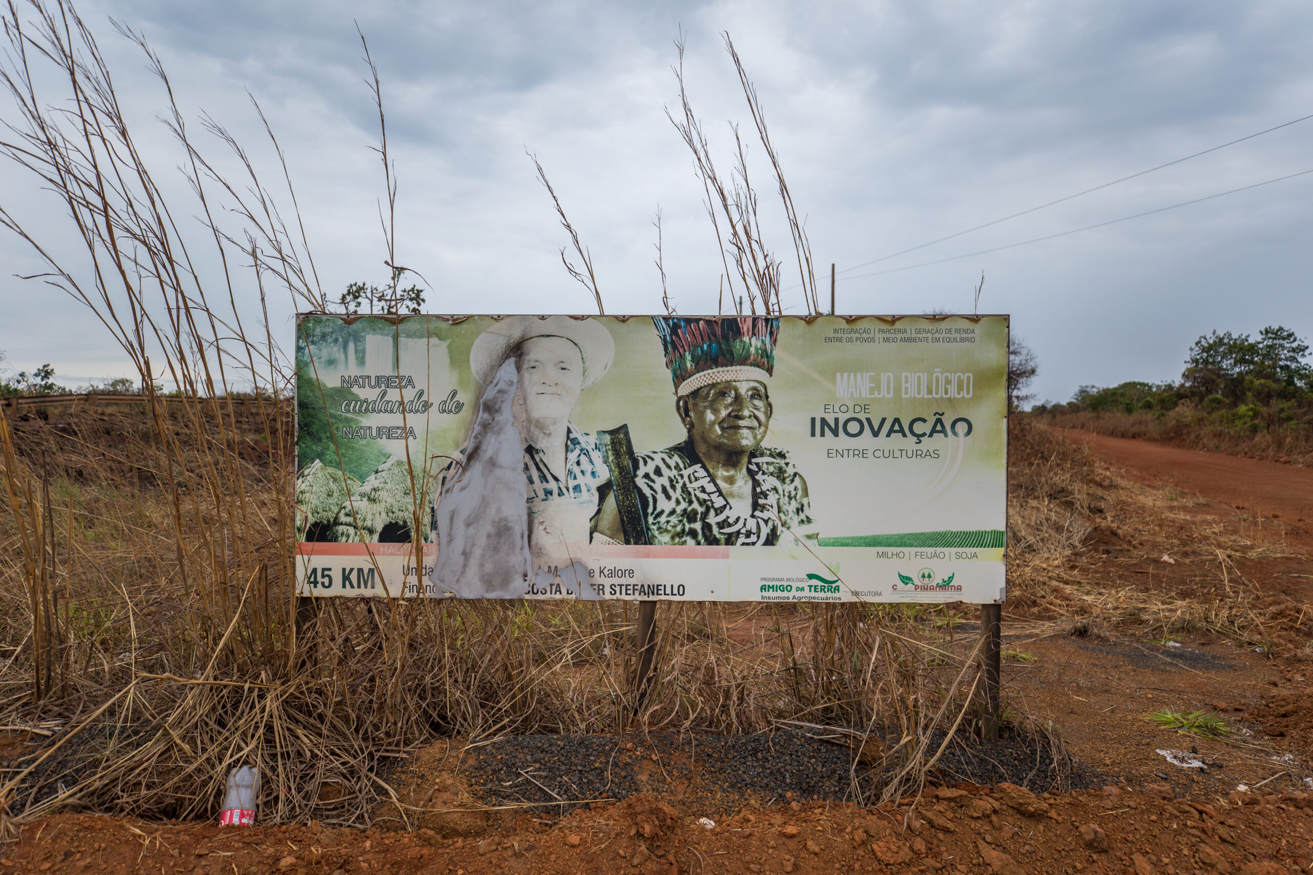 Na entrada da TI Utiariti, outdoors celebram parceria entre indígenas. Foto: Fellipe Abreu