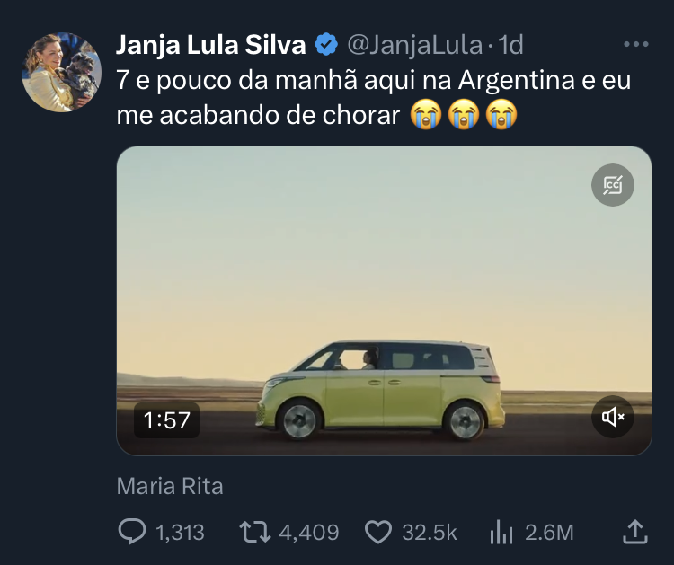 Meu coração traiçoeiro, descompasso de horror, precisou de mais alguns centímetros de rolagem para chegar a uma nova tuitada emocionada. É Janja. E leio uma, duas, dez vezes para entender se bem entendi: a primeira-dama está entusiasmada com uma publicidade da Volkswagen. Uma liderança política de um país como o Brasil, celebrando uma jogada de marketing de uma corporação acusada de envolvimento com o nazismo e associada à ditadura de 1964. Começo a pensar, agora, qual o mecanismo social que permite desconectar os pontos e esvaziar de sentido nossa memória coletiva, nossas vítimas, nossas dores.