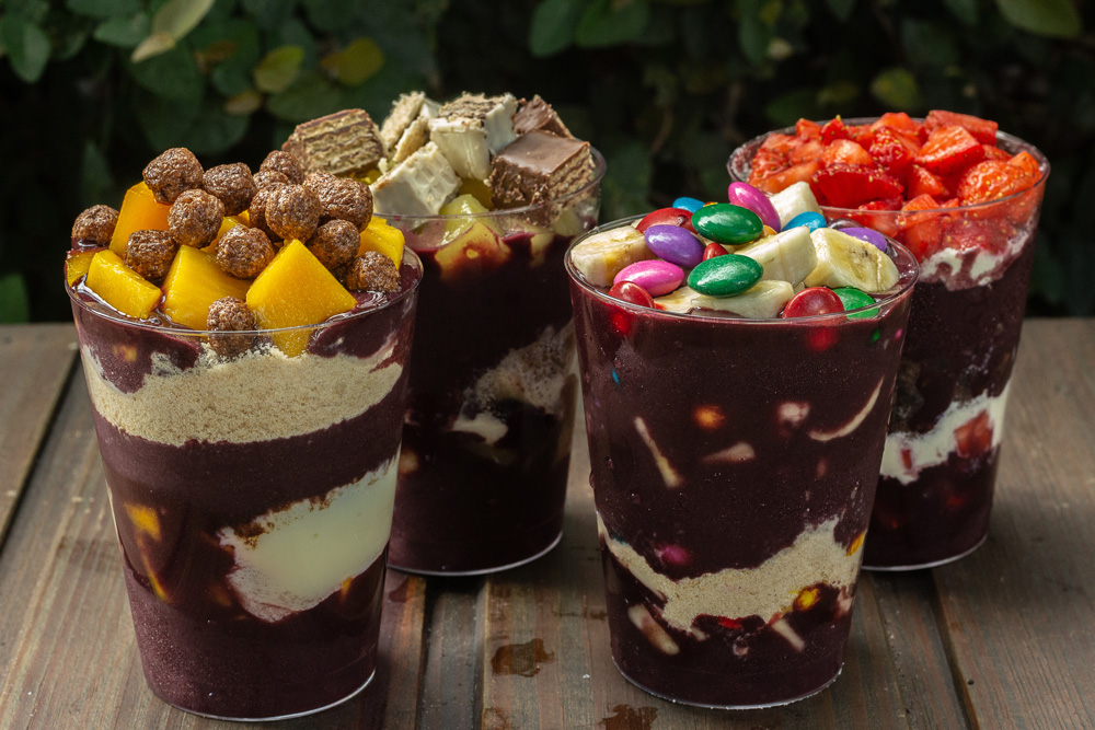 Vender açaí no Brasil virou nicho do empreendedorismo. No YouTube e em qualquer rede social é possível encontrar vários vídeos de pessoas ensinando como ganhar dinheiro com açaí. Tem gente usando polpa de 8% de açaí, que compra a R$ 10 o quilo, e mistura com outras coisas pra fazer render e vender com um monte de complemento no iFood. Em uma rápida pesquisa no aplicativo, os preços de uma porção individual em São Paulo variam entre R$ 18 e R$ 30 – a gente encontrou também uma porção de 500g de açaí trufado com creme de kit kat por R$ 37,90.