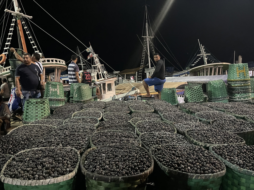 A safra do açaí acontece entre junho e dezembro. Historicamente extrativista, o alimento já foi conhecido como pão dos pobres, mas seu atual modo de produção e altos preços têm modificado o consumo na região amazônica, bem como no Brasil e no mundo. Transformado em matéria-prima para sorvetes, sobremesas e produtos de linha fit, o fruto vem reproduzindo padrões de outros alimentos que hoje são considerados commodity, mesmo que a cadeia de produção ainda seja muito permeada pelas comunidades ribeirinhas locais.