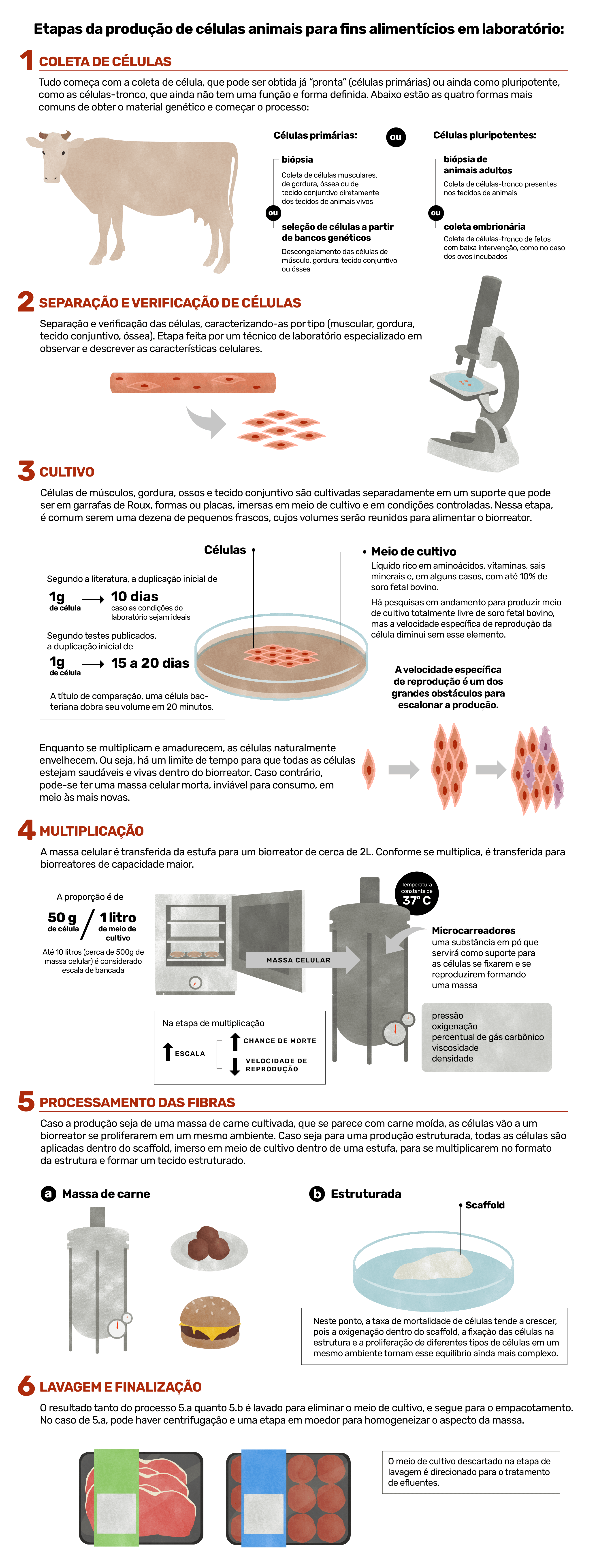 Enquanto a explicação geral sobre a produção parece conter etapas bem definidas, ao olhar o processo de perto, encontram-se mais gargalos e falta de respostas do que certezas. As startups enxergam o copo cheio, e têm ditado o debate público com um otimismo exacerbado sobre a viabilidade e a necessidade de investir em carne cultivada.