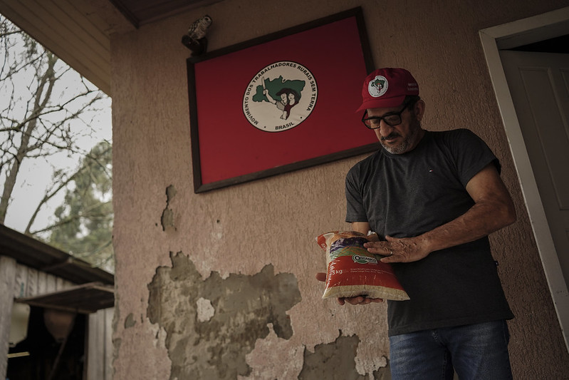 “Continuamos apoiando o governo, mas a ajuda não está chegando na ponta”, reclama, sobre a gestão Luiz Inácio Lula da Silva (PT), que é historicamente alinhado ao MST. Mulinari diz que os assentados receberam os R$ 5,1 mil de auxílio do governo federal, como todos os outros impactados pelas enchentes, mas precisam de ajuda para retomar a produção como era antes. Uma bomba para irrigação de arroz, que foi perdida na enchente, custa R$ 35 mil. “Nós doamos dez caminhões de alimentos durante a pandemia, mais de 54 mil marmitas para os desabrigados só em julho. Queremos colaborar, mas também precisamos de ajuda.”