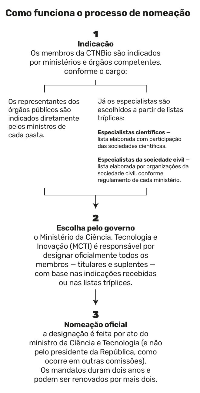Na avaliação de Tamara, essa estrutura de governança contribui para a dispersão de responsabilidades. O Ministério da Justiça escolhe os representantes dos consumidores, mas a CTNBio, vinculada ao MCTI, pouco ou nada cobra sobre o andamento das nomeações. “No fim, parece que ninguém sabe mais quem é responsável por quê.”