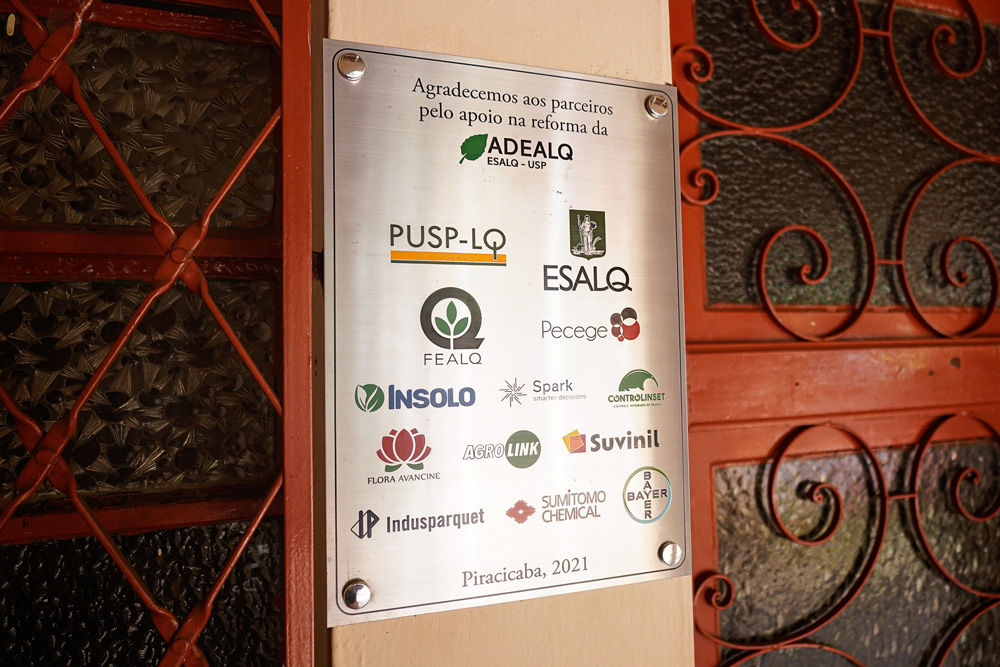 Na porta de entrada da associação de ex-alunos há uma placa informando suas principais financiadoras, entre elas, a Bayer. Segundo o presidente da Adealq, Marcelo Santos, a maior parte desse financiamento vai para um programa de bolsas de permanência para “alunos carentes” da Esalq, gerido pela associação. Dentro da sede, exemplares da já extinta Revista da Adealq trazem propagandas da Monsanto na contracapa.