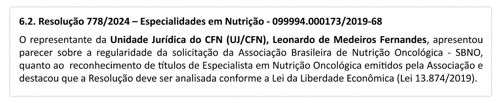 A íntegra deste parecer jurídico não consta mais no sistema do CFN. O trecho mencionado se encontra em meio a um parecer jurídico assinado por Leonardo Fernandes em 7 de janeiro de 2025.