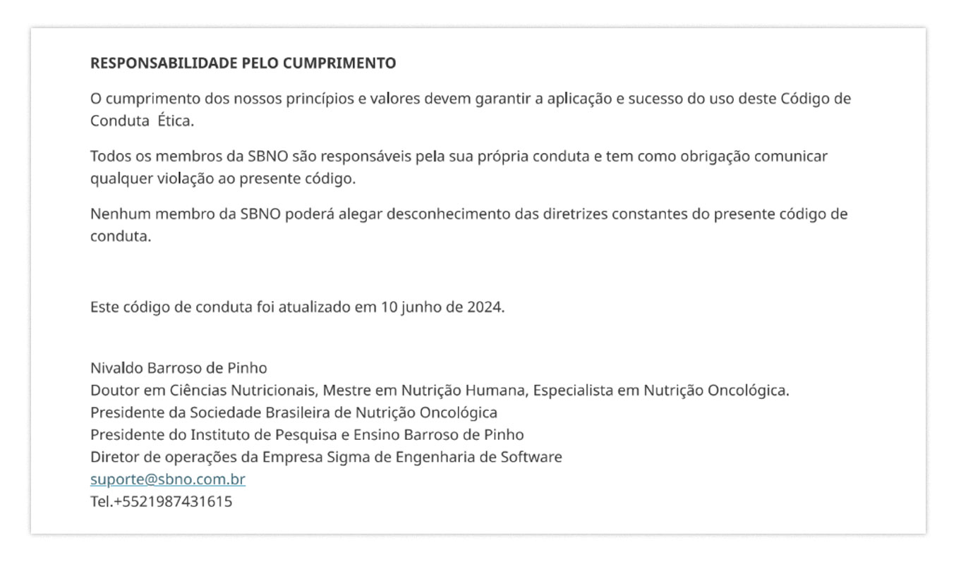 A política de conflito de interesses da SBNO data de 10 de junho de 2024, anterior ao primeiro parecer do CFN, e não havia sido alterada até o fechamento desta reportagem.