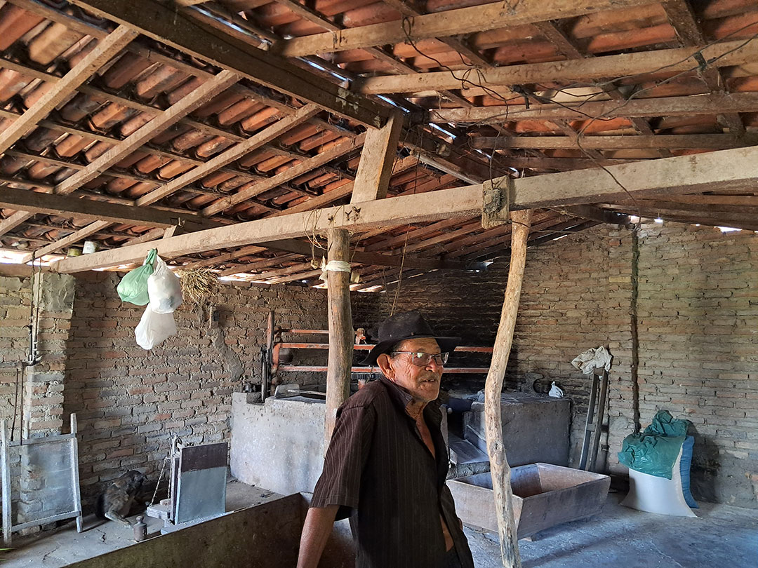 É a falta de chuva e o cansaço do corpo que têm forçado seu Pedro, de 71 anos, a diminuir a produção. Ele conta que há mais de 20 anos trabalha na sua própria casa de farinha, e que nunca antes produziu tão pouco como hoje. Isso porque o agricultor não tem plantado mais muita mandioca e, diferentemente dos grandes produtores, que têm sistema de irrigação, ele depende só da chuva.