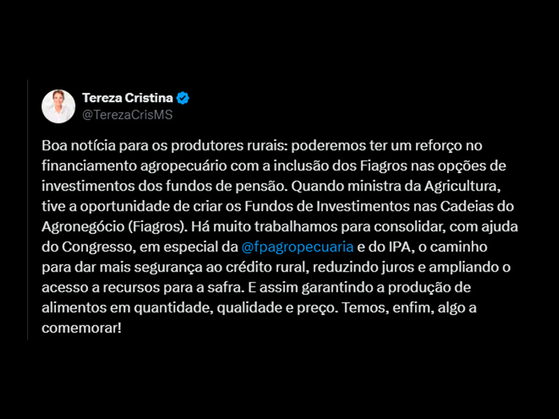 Supplementary pension funds manage vast resources, equal to 11% of Brazil’s GDP as of 2024. The anticipated increase in Fiagro investments would represent over a third of what’s allocated in the Plano Safra 2024-2025, the current federal program providing public financing for agribusiness.