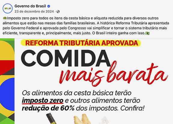 Em 12 de dezembro de 2024, o Senado ratificou a inclusão da carne na Cesta Básica Nacional de Alimentos. No plenário, senadores contrários ecoaram os alertas da equipe econômica: os regimes favorecidos poderiam elevar outros tributos e comprometer a progressividade da reforma.