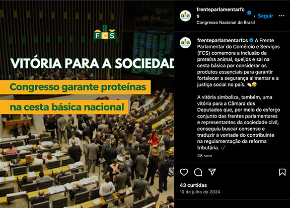 Em comunicados, entrevistas e peças publicitárias, a FPA defendeu a cesta básica como uma forma de garantir alimentos mais baratos para a população. A força desse argumento não estava na precisão, mas na facilidade com que se assimilava, observa Marcello Baird, coordenador de Advocacy da ACT Promoção da Saúde. “A chave era reforçar o que muitos já queriam acreditar: que comer carne todo dia é um direito inegociável, que o Estado tem a obrigação de subsidiá-la a qualquer custo, e que qualquer crítica a isso soa como elitismo ou desprezo pelos pobres”, explica.