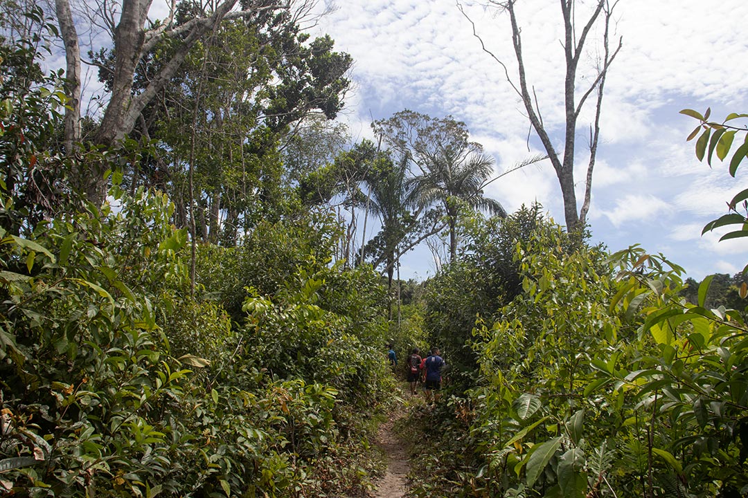 Quando peço para conhecer o plantio, ela fala alguma coisa e segundos depois aparece de facão na mão. Dona Orlanda pisa firme pela trilha. É difícil acompanhar o ritmo.