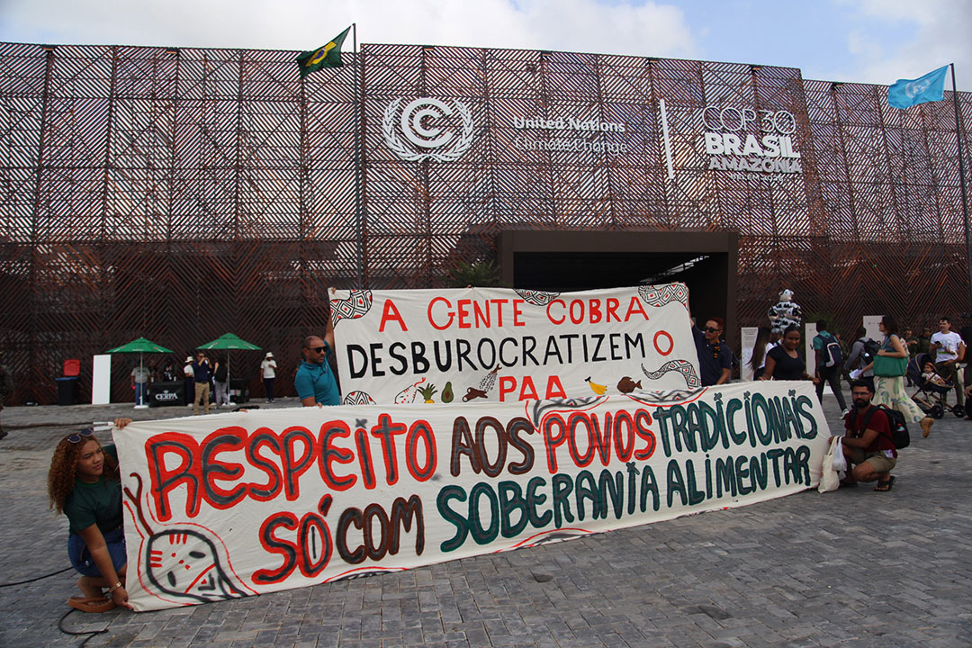 Segundo estimativa da Cúpula dos Povos, pelo menos dez mil representantes de territórios tradicionais estão na capital paraense para exigir direitos e denunciar os impactos das mudanças climáticas. A cúpula teve início no dia 12 de novembro com uma barqueata, uma manifestação que reuniu cerca de 200 barcos, lanchas e rabetas na Baía do Guajará exigindo justiça climática. É a primeira vez que esse tipo de manifestação ocorre durante uma COP.