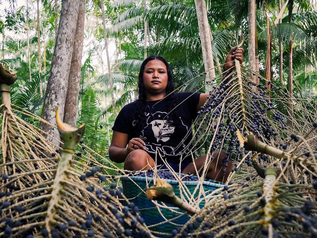 Dayane Araújo, agroextrativista, pescadora e artesã do território agroextrativista Pirocaba, em Abaetetuba, no Baixo Tocantins, conta que que, além do açaí, muitas espécies da biodiversidade estão sob risco. “O camarão e o peixe mapará eram muito encontrados no território. De uns anos pra cá, estamos pescando com bastante dificuldade. Andiroba, pupunha, cupuaçu e bacaba também estão mais difíceis de coletar”. O território Pirocaba é um dos que desenvolvem projetos com apoio do Fundo Dema.