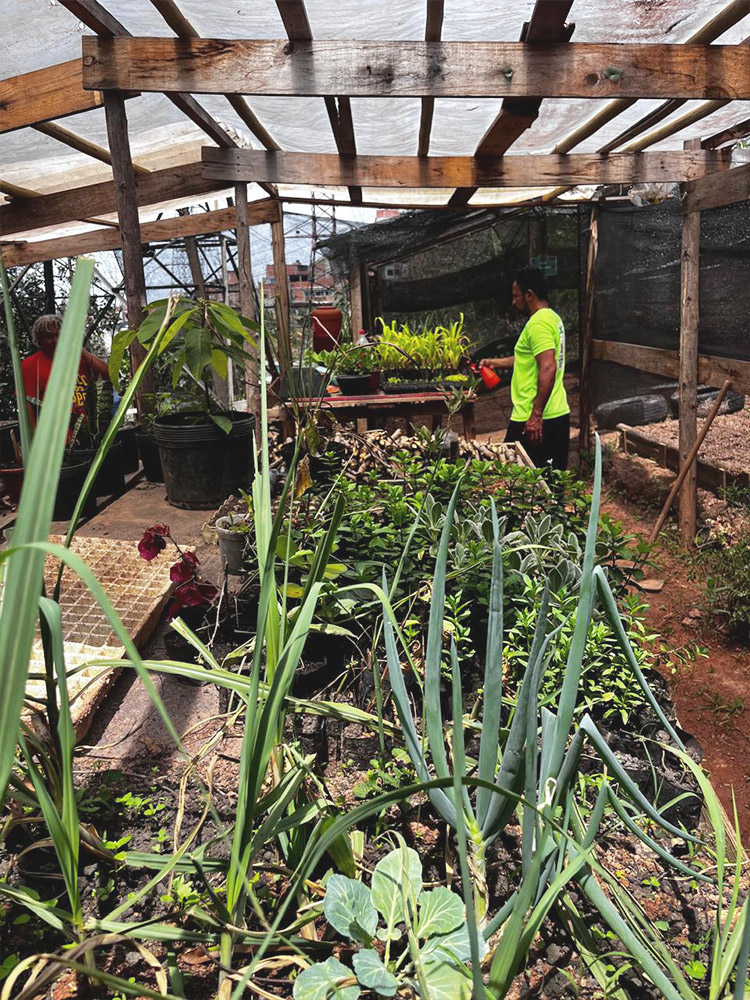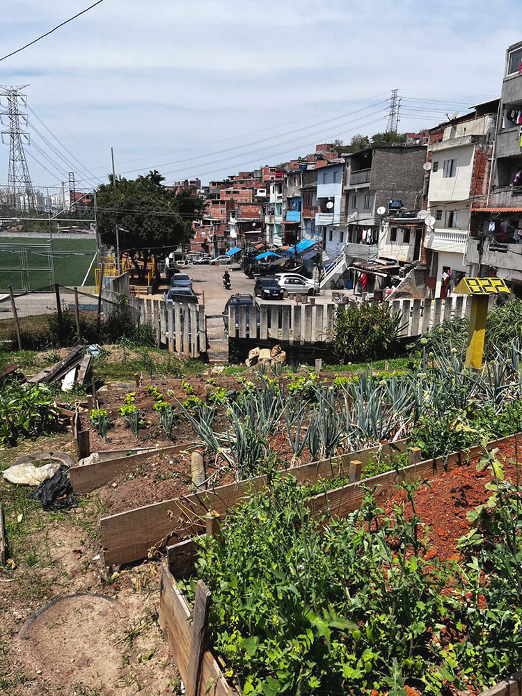 Ao caminhar em meio ao verde, por um momento você até poderia supor que saiu da capital paulista, mas o frenesi do trânsito da avenida Guido Caloi, que dá acesso à Marginal Pinheiros, logo chama à realidade. Essa é uma das vias mais movimentadas e caóticas de São Paulo. Mas é ali, no meio de um conjunto de favelas chamado Jardim Ibirapuera, que os moradores decidiram construir uma alternativa à pobreza alimentar que assola a comunidade.