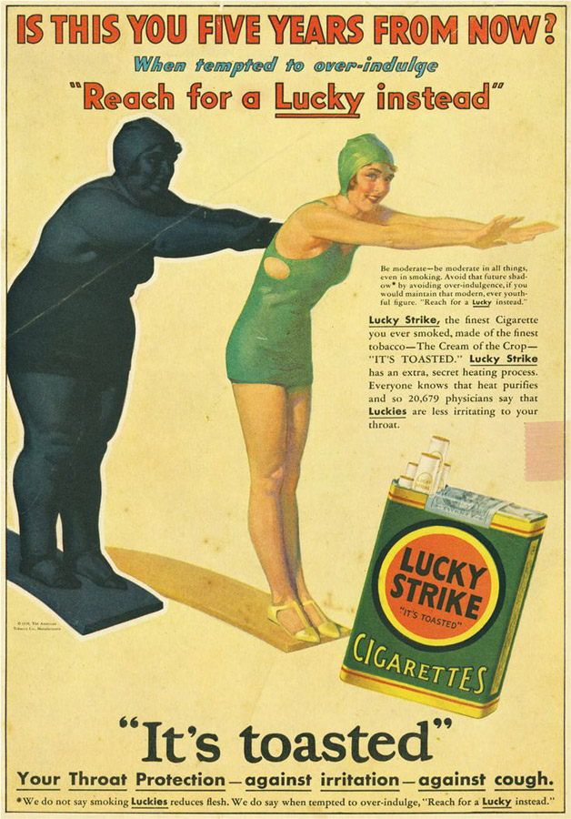 A mensagem era clara: se as estrelas de cinema, que personificavam o sucesso, fumavam, a mulher comum que desejasse atingir aquele patamar deveria imitá-las. A fumaça, em cenas de filmes noir ou em poses de modelos, era parte da construção narrativa. As publicidades chegavam a atrelar o uso do cigarro à “conquista” da magreza, do corpo tido como ideal. No Brasil a dinâmica se repetia nas novelas.