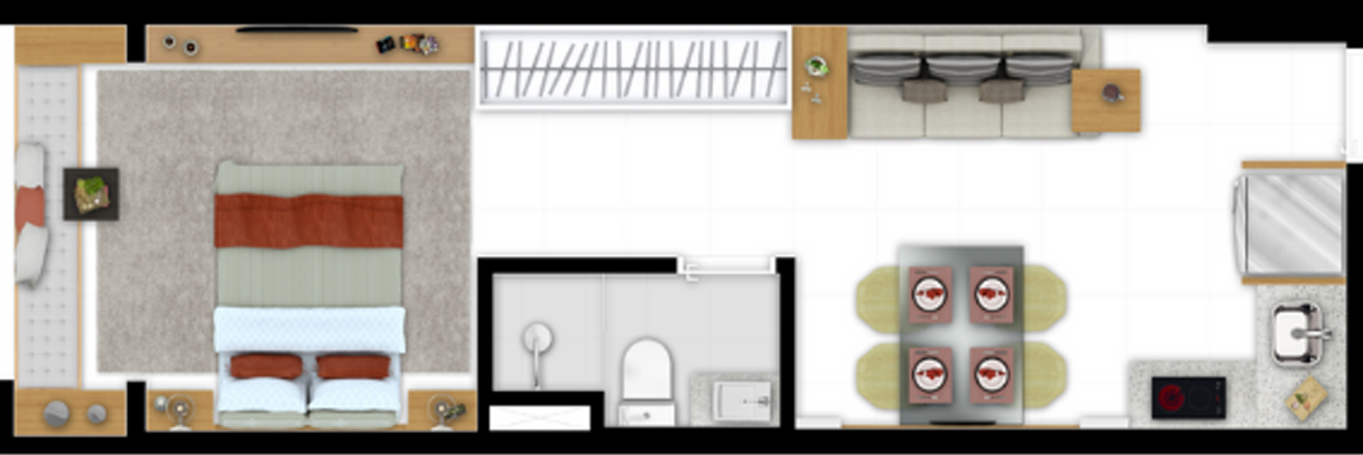 Planta da kitnet de 29m2 do Tons do Brás – Crédito: Reprodução