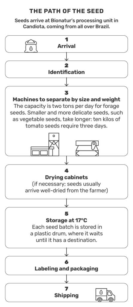 With a processing unit in the far south of Brazil, Bionatur has been producing and selling seeds of more than 30 varieties nationwide for 28 years.