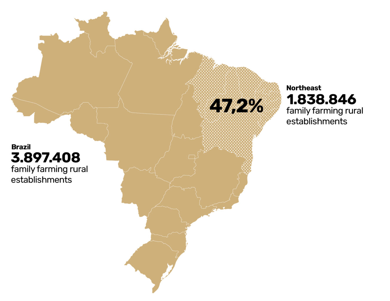 According to the latest Agricultural Census conducted in 2017 by IBGE, there are 3.8 million family farming establishments in the country. Half of them are located in the Northeast.